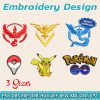 6 in 1 Design to Embroider Pokémon Go, Pikachu, Pokeball, Elements