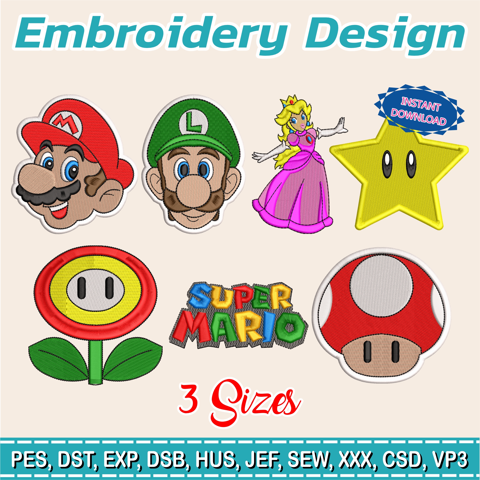 7 in 1 Design to embroider / Mario / Luigi / Peach / letters super mario / star / plant /