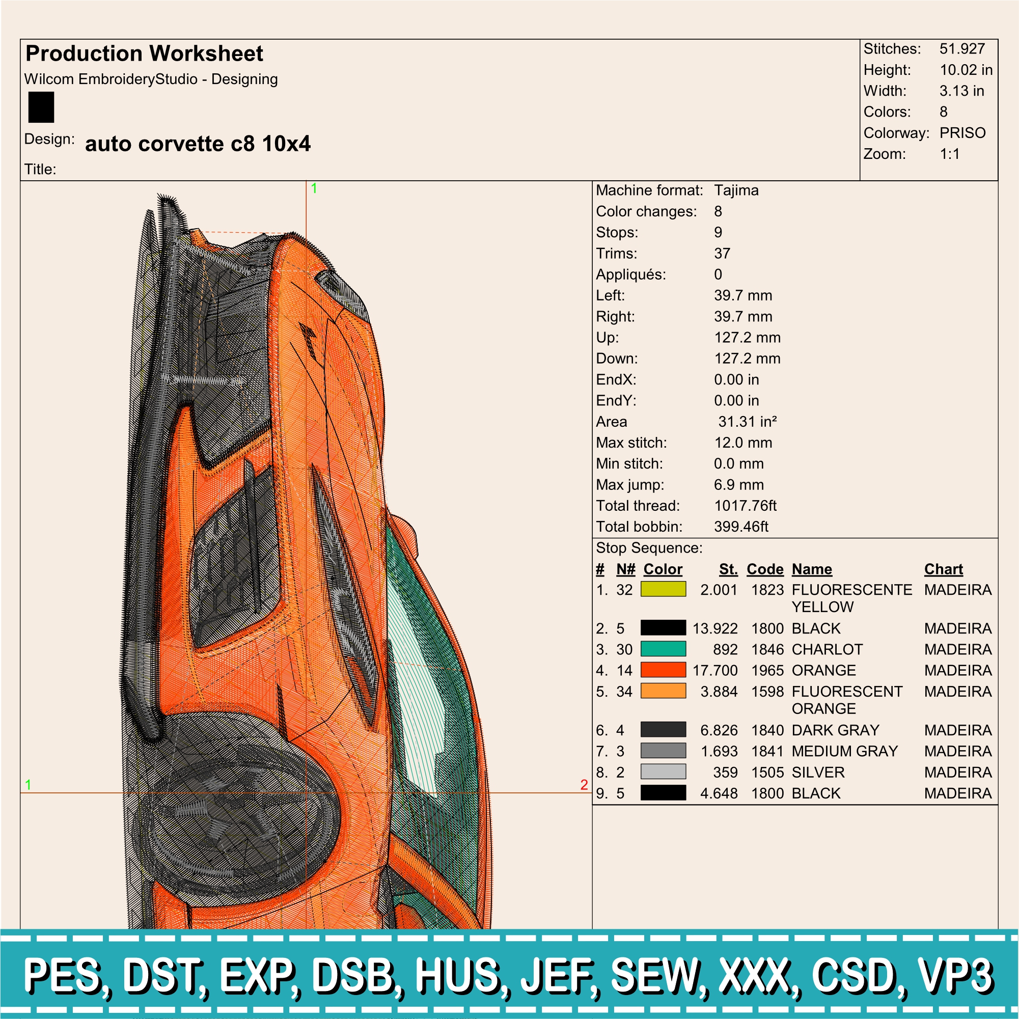 Embroidery Design / CORVETTE C8 / sports car / 7 Different Sizes / INSTANT Download / Car Design / Embroidery file has been tested