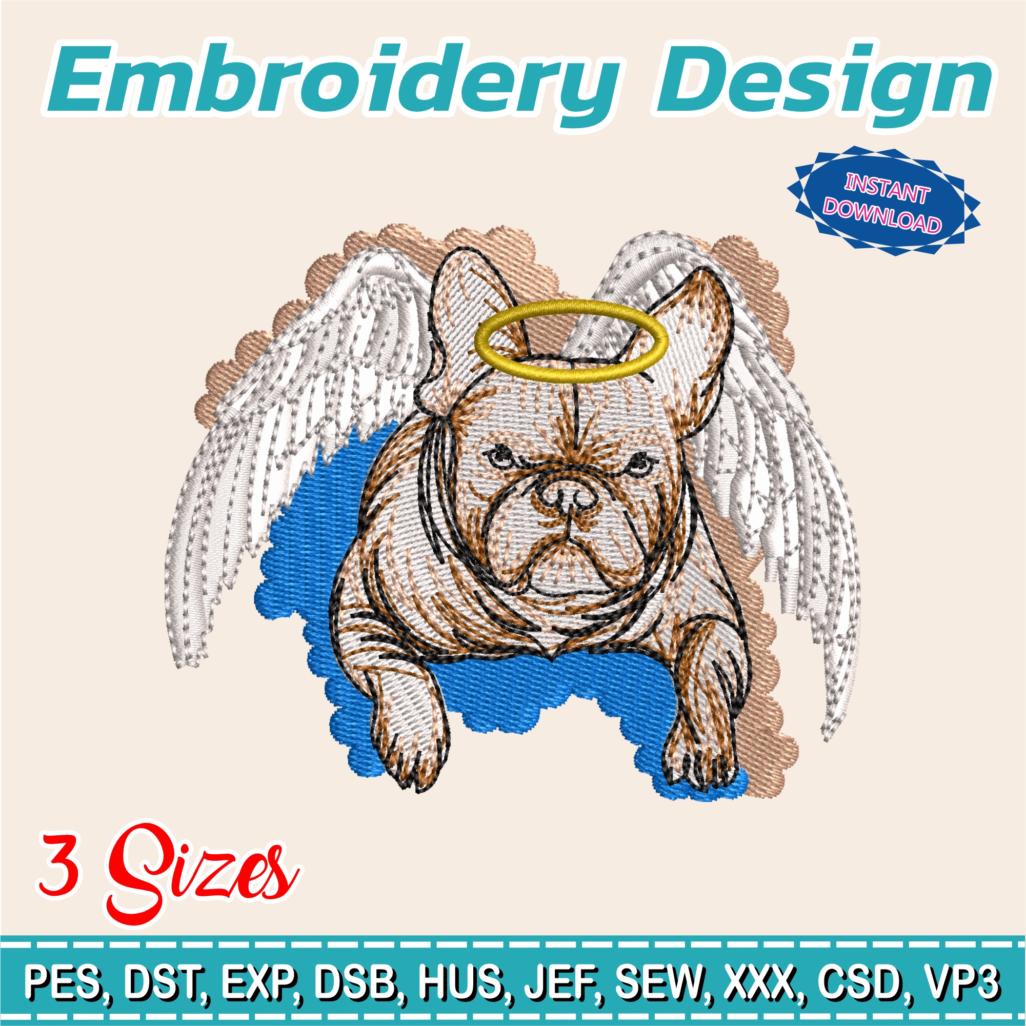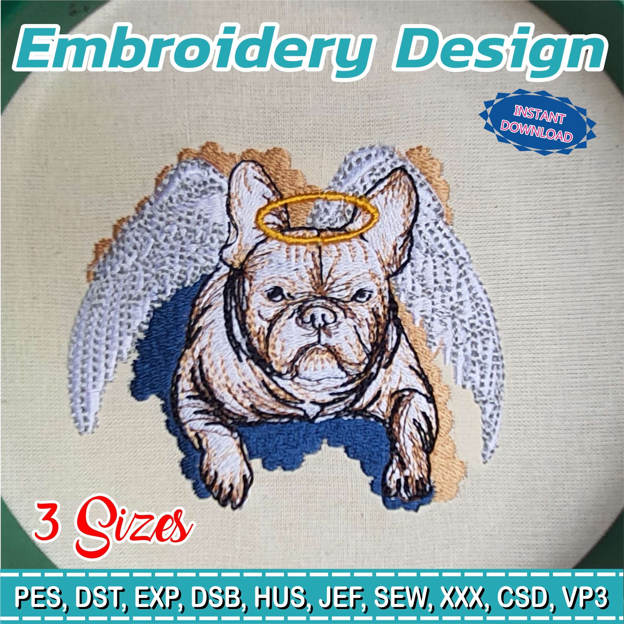Embroidery design / French bulldog / French bulldog with wings / pet souvenir / angel dog / Embroidery file has been tested