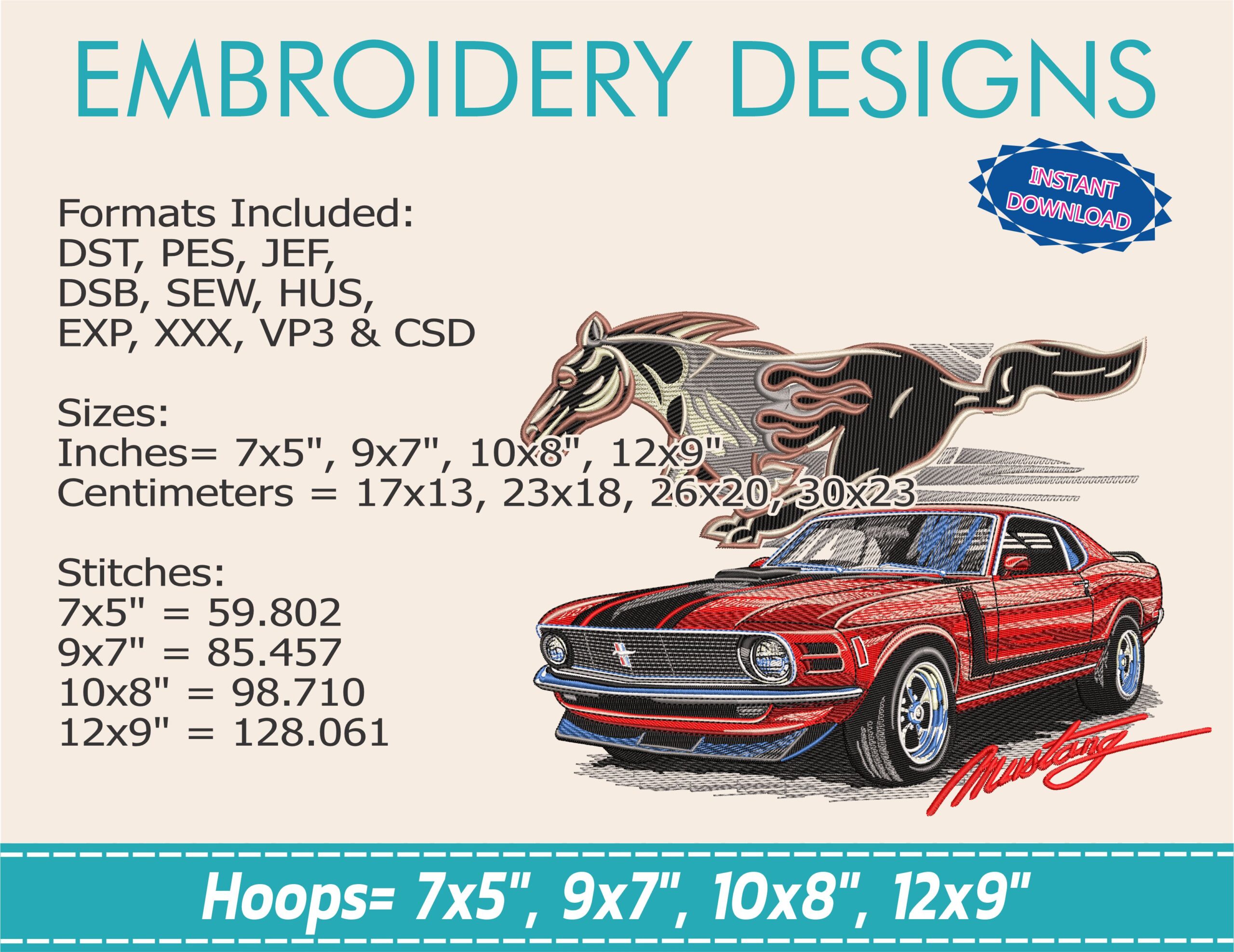 Embroidery Design / Mustang GT / Chevrolet / 4 Different Sizes