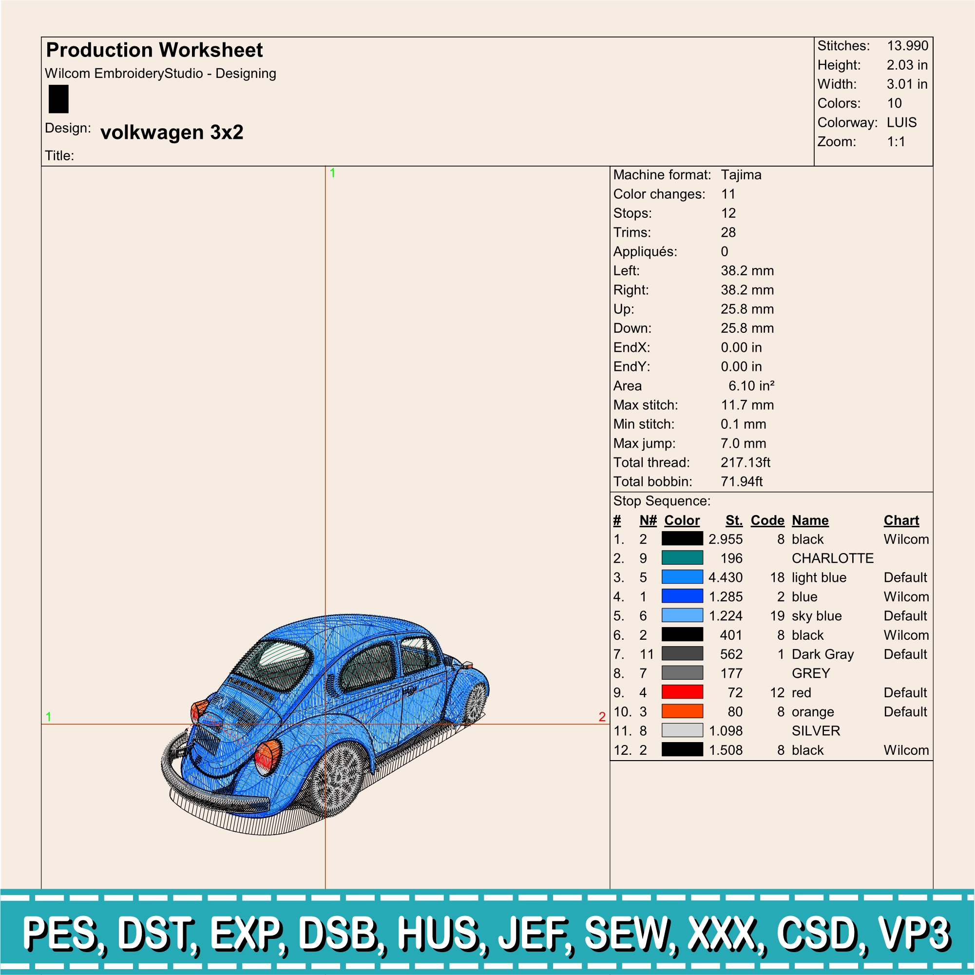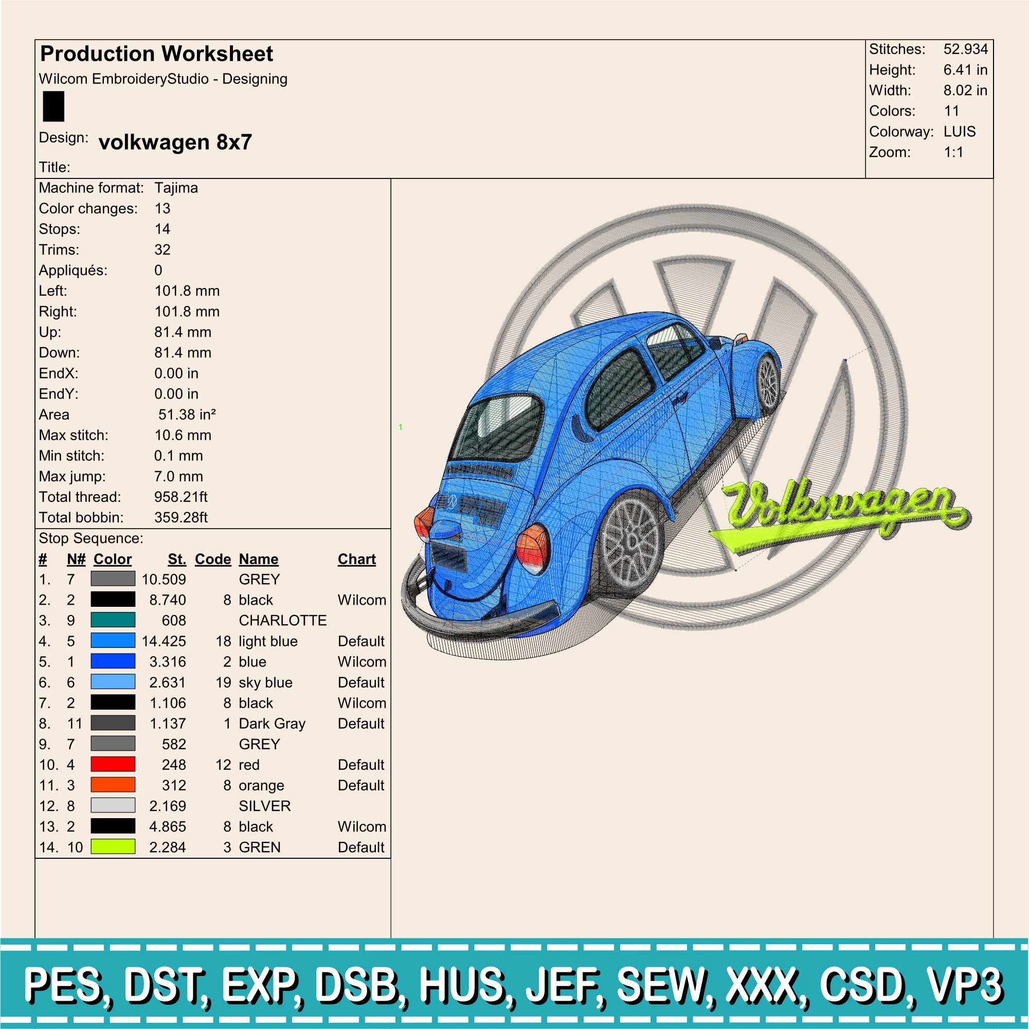 Embroidery Design / Volkswagen / volkswagen beetle / 6 Different Sizes / INSTANT Download / Car Design / Embroidery file has been tested