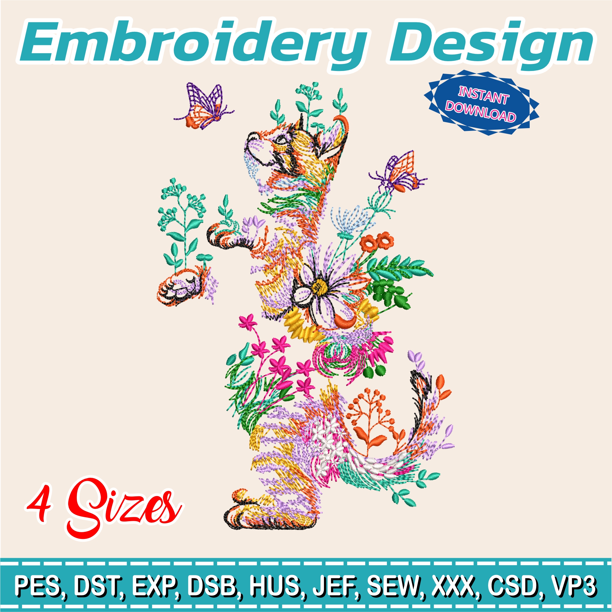 Embroidery designs / Flowers / Rose / Butterfly / Cat with flowers / Rainbow /