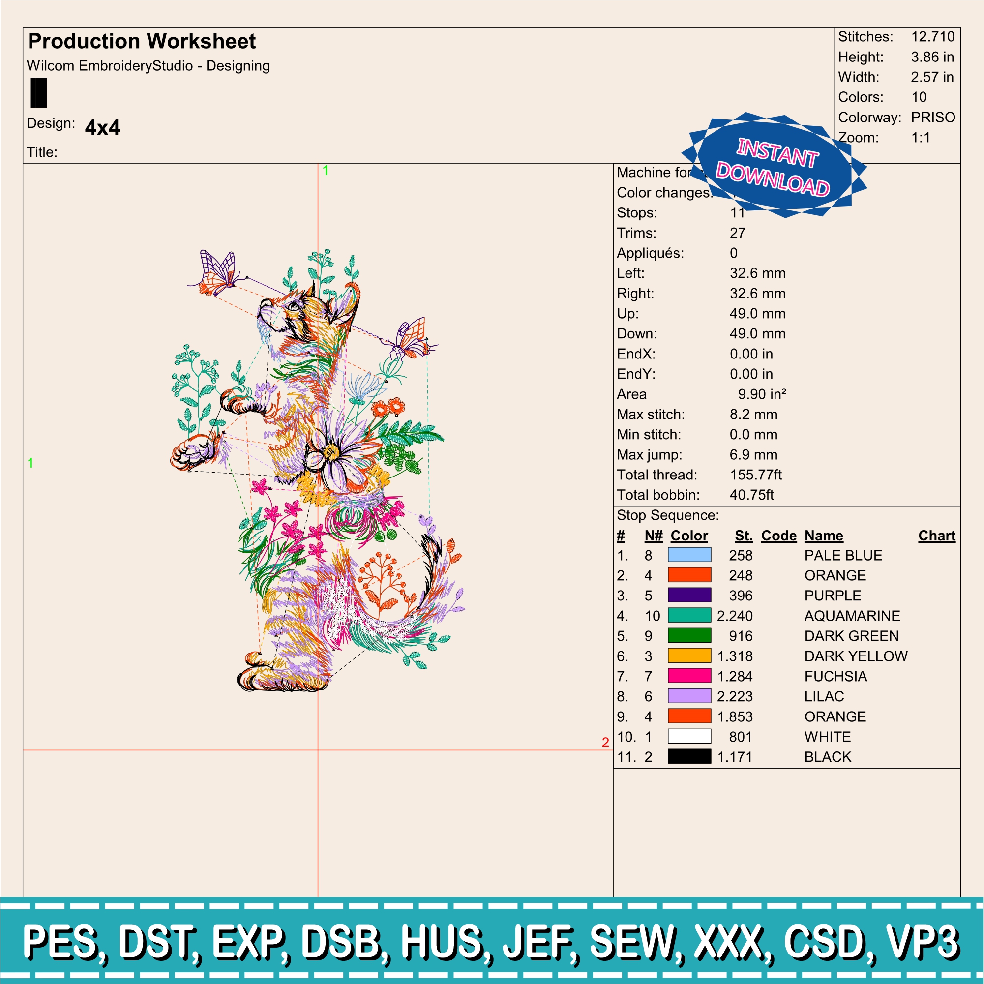 *You MAY embroider the design on the finished item and use it for PERSONAL COMMERCIAL or unlimited use.