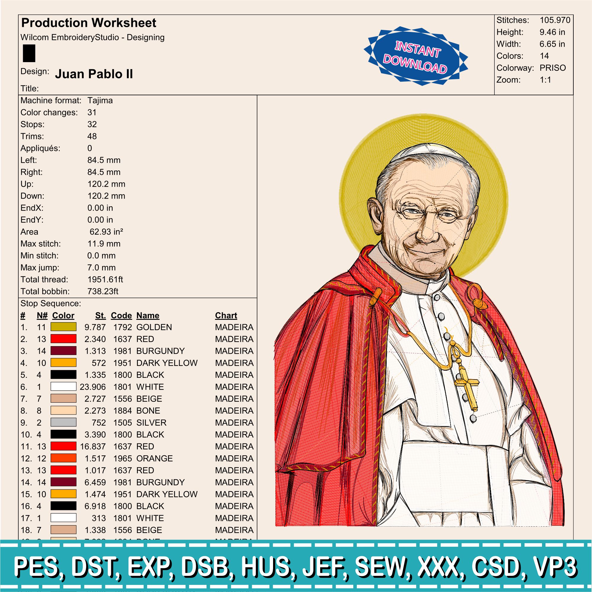 Pope John Paul II Embroidery Design | Catholic Saint Machine Embroidery | Religious Pattern | Instant Download | Embroidery File Tested